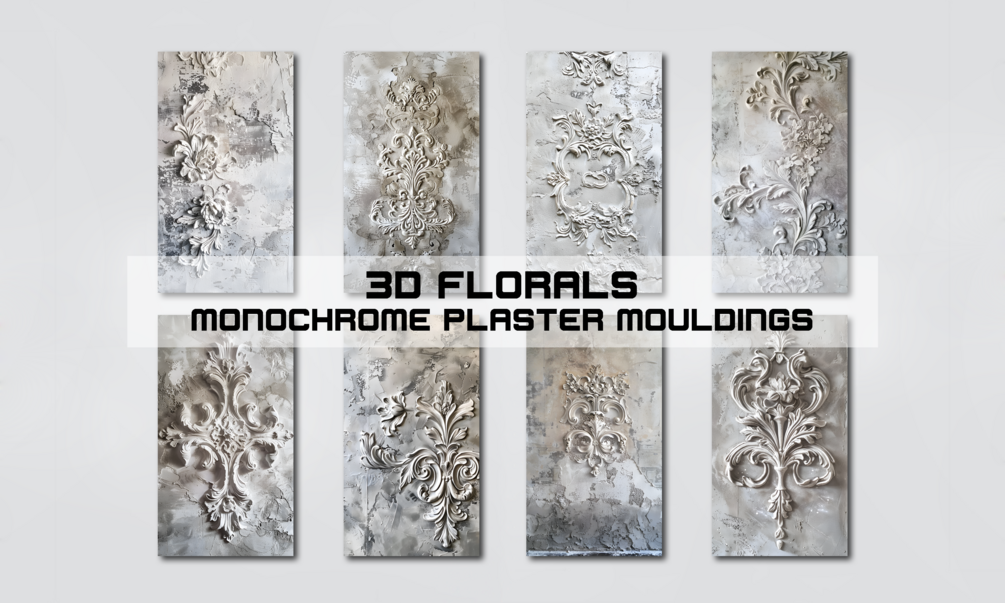 3D Florals - Monochrome Plaster Mouldings | Wallpaper Pack
