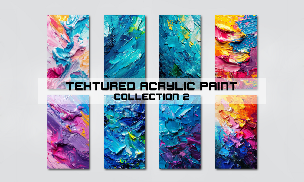10 vibrant (9:16) wallpapers showcasing rich acrylic paint textures in 4K resolution, optimized for mobile devices.