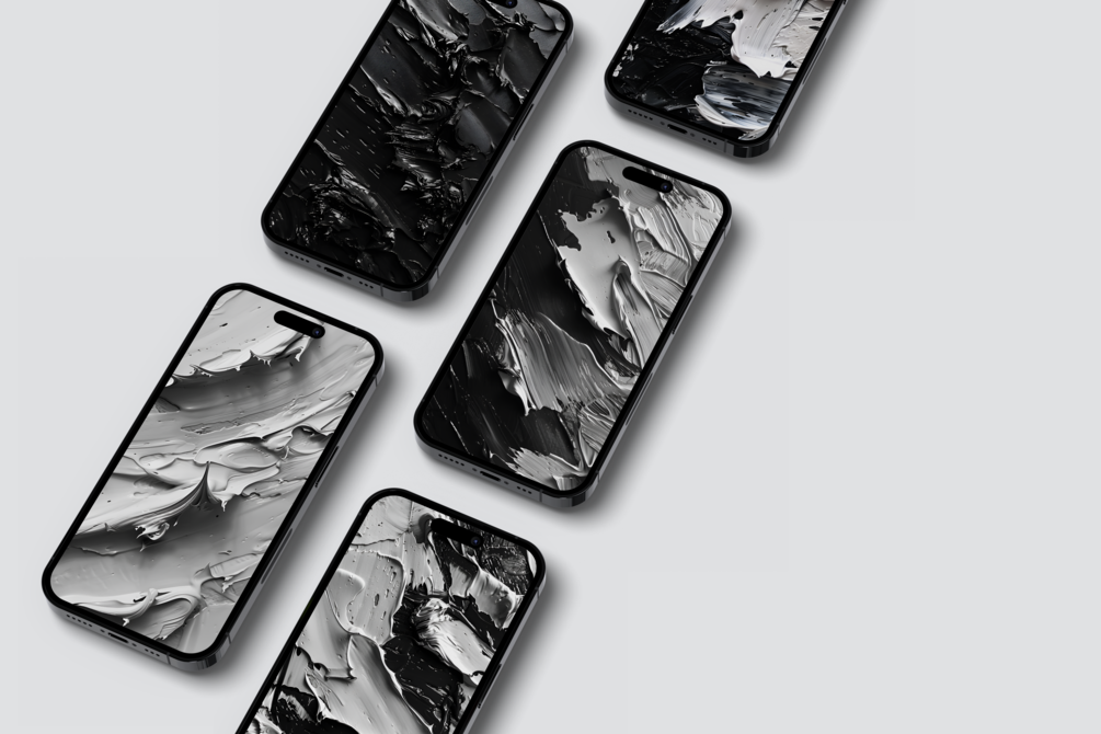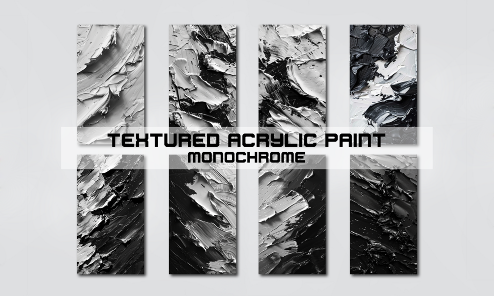 10 sleek and sophisticated (9:16) monochrome wallpapers of thick acrylic paint textures in 4K resolution, optimized for mobile devices.
